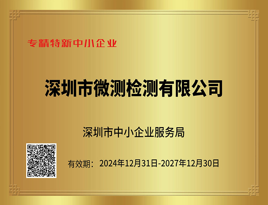 “專精特新”中小企業是指具有專業化、精細化、特色化、新穎化等四大特征的中小企業。企業通常專注于某一特定細分市場,擁有獨特的技術或工藝,產品或服務具有較高的附加值和顯著的經濟、社會效益。微測檢測憑借其在檢測領域的專業專注、精益求精、獨特的技術優勢以及持續的創新能力,榮獲“專精特新中小企業”稱號。
